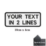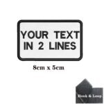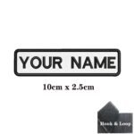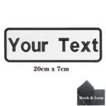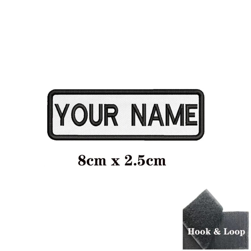 Elevate your apparel with our high-quality, custom name patches, meticulously embroidered to showcase your unique identity. Available in a pristine white background, these name patches offer a sleek rounded-edge design bordered with an elegant black edge color, ensuring they stand out with sophistication.